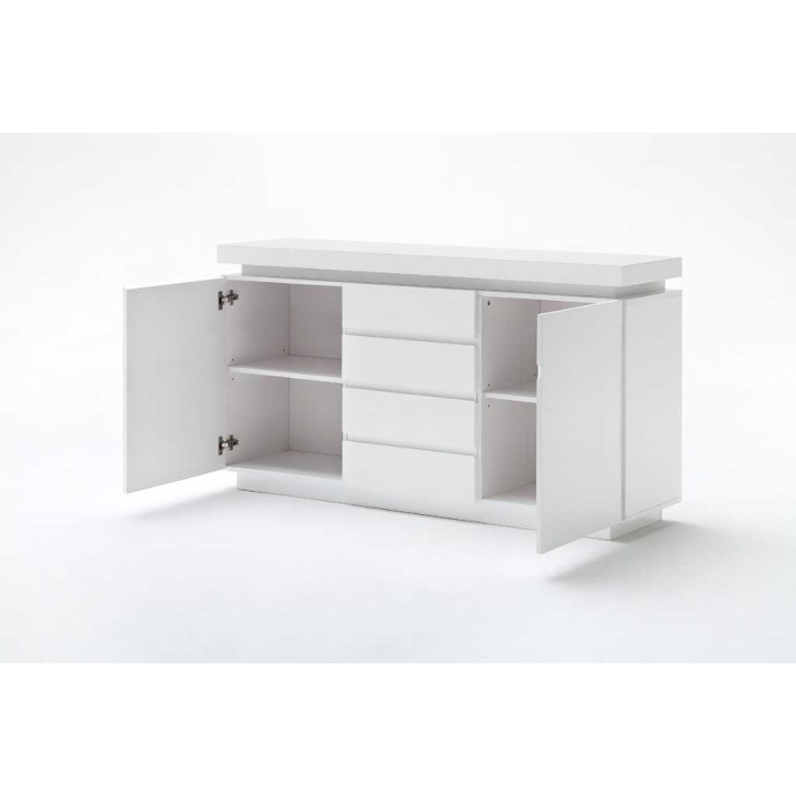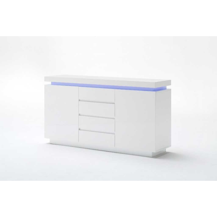 The presented product is made in high gloss white lacquer. Its undeniable advantages include the possibility of using variable LED lighting controlled by remote control. The height is 81 cm, the width is 150 cm and the depth is 40 cm.
