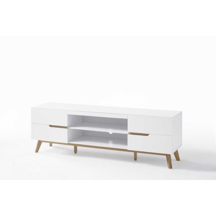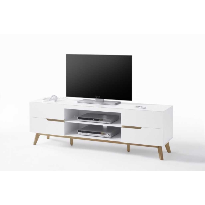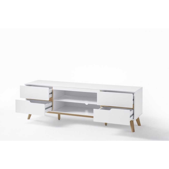 The RTV cabinet from the Cervo collection produced by MC Akcent was designed specifically for people who think of introducing a Scandinavian climate into their home. Its extremely attractive form will make selected interiors more attractive and at the same time will introduce an exceptional, unique climate. The RTV cabinet from the Cervo collection is the quintessence of style, elegance and the highest quality of workmanship. It will be the perfect complement to rooms such as a living room, guest room or lounge.