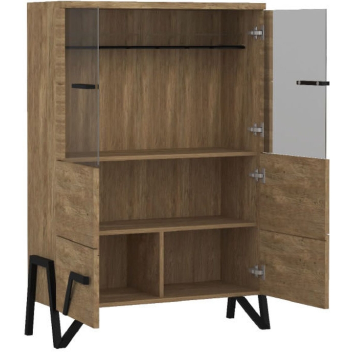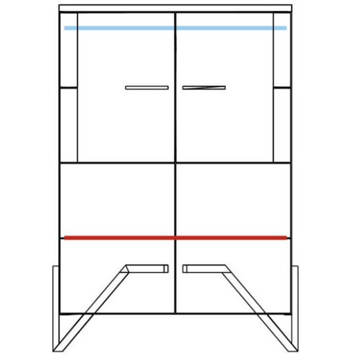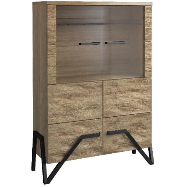 The low display cabinet with lighting is a stylish piece of furniture that will help you better organise your interior. It has practical shelves on which you can both display your decorations and organise your home textiles. The display case has a glass front, which protects the decorations from dust settling and exposes them in a beautiful way. The furniture is set on high metal legs. The unit is made of high-quality board and solid wood elements. The PIK cabinet looks phenomenal, it is also durable and resistant to any scratches and damage. The furniture fits perfectly into the loft and industrial style.