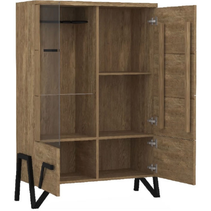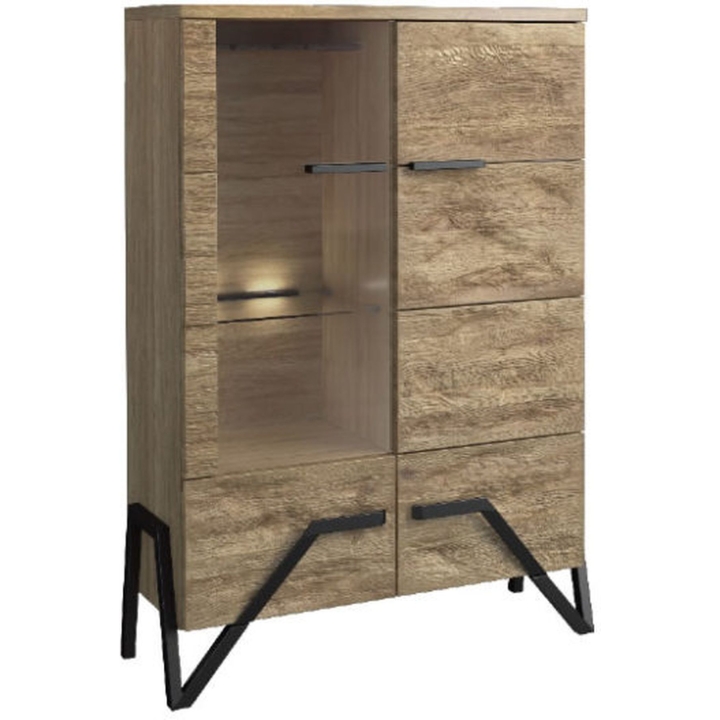 The stylish display cabinet from the PIK collection will mainly suit modern, industrial and loft interiors. The furniture is available in two variants. Natural oak will be the solution for those wishing to brighten up the room a little, while chestnut is for customers who prefer a more classic colour scheme. The display cabinet will allow the interior to be well organised and will also help to display the decoration. The beauty of the decoration is emphasised by the LED lighting. The solid is set on high solid legs, thanks to which not only maintaining cleanliness in the room will be much easier, but also the furniture will look very elegant.