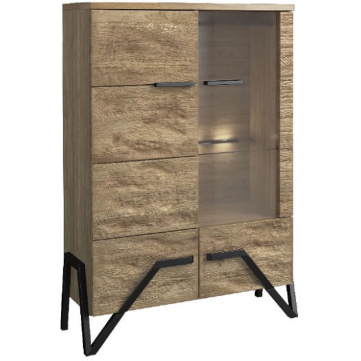 Without a doubt, the use of the glass cabinet from the PIK collection by Mebin will positively influence the look and organisation of the interior. In addition, the charm of the furniture is emphasised by LED lighting. The furniture is available in two variants. Natural oak will be the solution for those wishing to brighten up the room a little, while chestnut is a proposal for customers who prefer a more classic colour scheme. The low PIK cabinet is a sensational addition to the living room as well as the dining room. The body of the furniture is set on high metal legs, which add a distinctive character to the piece. The furniture looks very elegant, moreover, it is durable, as it is made of high quality raw materials.
