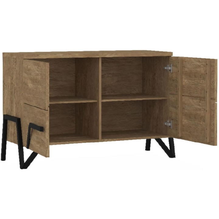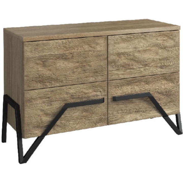 The capacious and functional PIK chest of drawers will help you better organise your interior and give it a distinctive shine. The product will perfectly complement loft and industrial style interiors. The furniture is available in two variants. Natural oak will be the solution for those wishing to lighten the room a little, while chestnut is for customers who prefer a more classic colour scheme. The chest of drawers is equipped with two lockable cabinets containing capacious shelves. The product is a perfect combination of elegant black and natural wood. The chest of drawers is made of high quality raw materials, which ensures its durability and aesthetic appearance. The solid set on high solid legs, thanks to which not only keeping the room clean will be much easier.