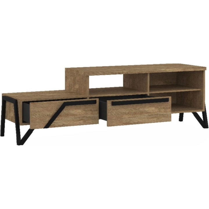The RTV maxi cabinet from the PIK collection will provide space for a set-top box, home cinema or games console, as well as a TV. It is a stylish piece of furniture that will perfectly complement the TV corner in your living room. The cabinet is equipped with two capacious drawers and a practical extension. The furniture is available in two variants. Natural oak will be the solution for those wishing to brighten up the room a little, while chestnut is for customers who prefer a more classic colour scheme. The solid has been set on high metal legs, which add to its distinctive character. The RTV cabinet from the PIK collection is a perfect combination of elegant black and natural wood.