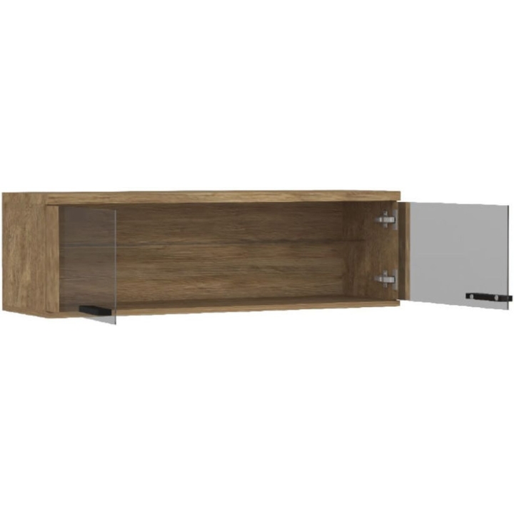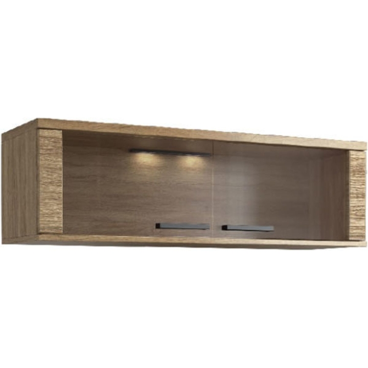 The Pik cabinet is an elegant piece of furniture which fits perfectly into loft and industrial style interiors. The display cabinet equipped with LED lighting beautifully emphasises the structure of the wood, as well as the content behind the glass front. The PIK hanging cabinet from the Mebin collection is the ideal solution for those people whose flat does not have enough space to place a traditional standing cabinet in the living room. The glass showcase will allow you to display your most beautiful decorations. The showcase is also characterised by high quality materials, thanks to which the furniture is durable and will retain its aesthetic appearance for a long time. The furniture is available in two variants. Natural oak will be the solution for those wishing to brighten up the room a little, while chestnut is a suggestion for customers who prefer a more classic colour scheme.