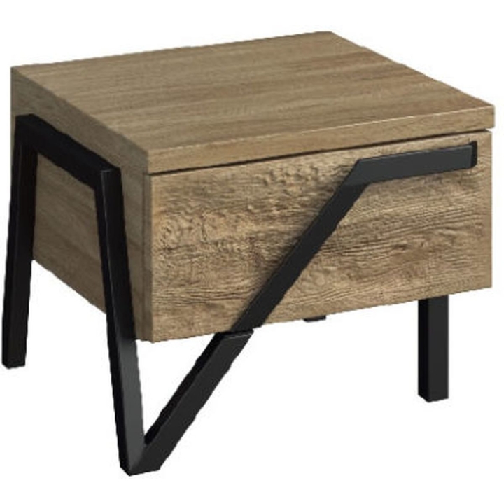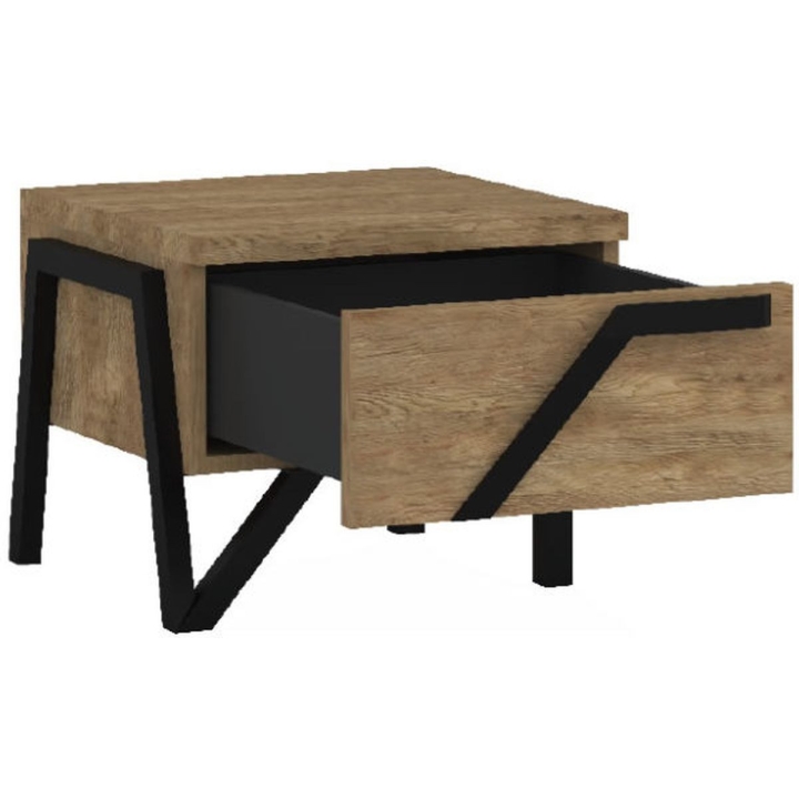 Bedside table from the Pik collection by Mebin is a modern piece of furniture, which is distinguished by its solid workmanship and impressive appearance. The visible grain of the furniture makes it a unique decoration of the room. The PIK bedside cabinet is a perfect addition to the bed from the same collection. The cabinet is equipped with a capacious drawer, where you can put things you want to have always at hand. On the top you can put a bedside lamp or put your phone away. The furniture is available in two variants. Natural oak will be the solution for those wishing to brighten up the room a little, while chestnut is a suggestion for customers who prefer a more classic colour scheme.