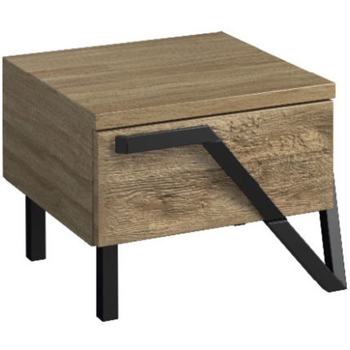 The bedsidetable is an indispensable piece of bedroom furniture. It has a capacious drawer where you can put the things you want to have always at hand. On the tabletop, you can place a bedside lamp or put your phone away. The furniture is available in two variants. Natural oak will be the solution for those wishing to brighten up the room a little, while chestnut is for customers who prefer a more classic colour scheme. The modern form of the furniture will certainly add a unique character to your interior. The body of the cabinet is set on metal black legs, , thanks to which not only maintaining cleanliness in the room will be much easier but also the furniture will look more modern.