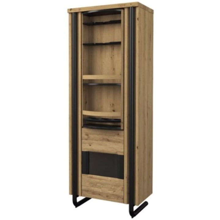 The swivelbar by Mebin will give your living room a beautiful, modern design. The furniture is equipped with spacious shelves and a revolving bar, which will allow you to hide glasses and alcohol so that they are not visible, but always easily accessible. To make the Omega bar look even more stylish it is worth retrofitting LED lighting to the furniture. The Omega bar is characterised by its simple lines, minimalism and functionality. It takes us into an interior where everything is perfectly thought-out. The metal legs also look great, giving the unit an elegant character. The colour scheme of amber oak with graphite emphasises the unconventional character.