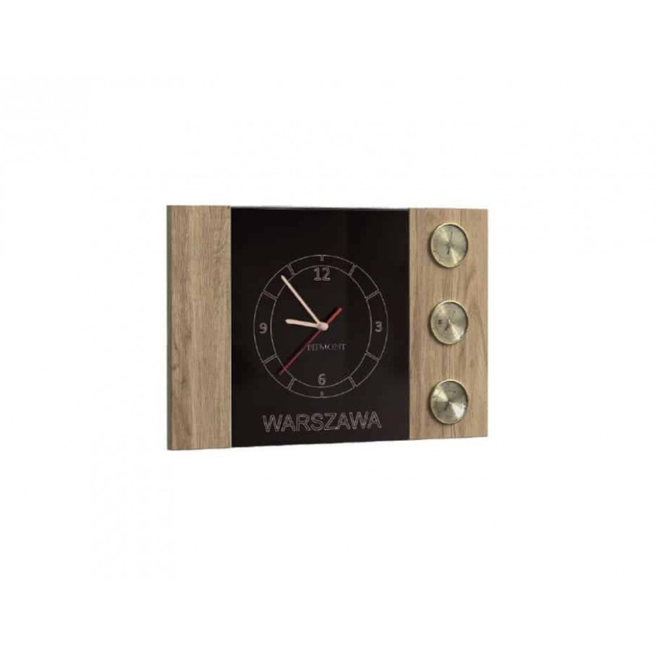 The weather station from the Pireus collection is a practical item that is sure to be extremely useful. This stylish accessory will ensure that you will always know the weather for the coming days. The natural combination of wood and black and its simple design is perfect for both modern and loft interiors. Made of solid, rough-hewn wood and natural veneer in natural oak lager or chestnut. The Pireus collection was created for lovers of the unconventional.