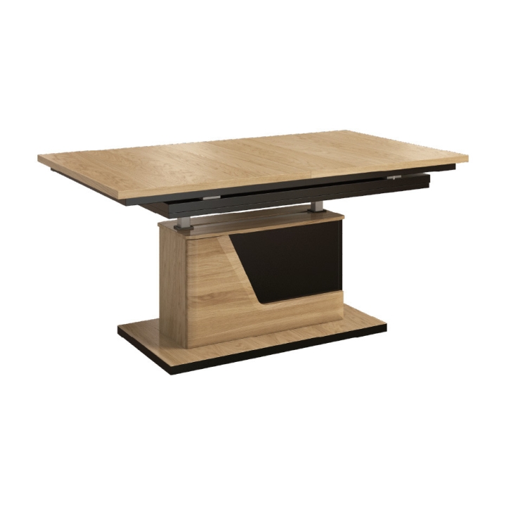 Extending bench III S from the Corino collection by Mebin is a functional piece of furniture, which will be perfect for small rooms. The furniture serves as both a bench and a table. It has a pull-out table top, which makes it possible to increase its size, providing more space for sharing meals with family members or for meetings in a larger top. The pneumatic lift of the top allows you to quickly and easily adjust the furniture to your current needs. The bench was made in natural oak veneer with elements of solid oak wood. The furniture is suitable for modern as well as classic interiors. Available in two colour options: natural oak and walnut.