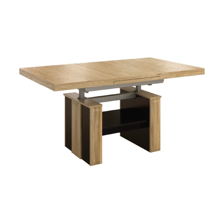 The bench from the Corino collection is a functional piece of furniture designed with smaller interiors in mind. The furniture was made in natural oak veneer with elements of solid oak wood. The Corino IV bench is an extremely stylish piece of furniture that nevertheless retains the subdued, unobtrusive look of traditional designs. The pneumatic lift of the top allows you to quickly adjust the furniture to your current needs, and the automatic extension and retraction of the insert makes everyday use easier. It will perfectly complement the interior of the living room, providing a place to enjoy meals together or to meet in a larger group. The furniture is a great match for modern and classic interiors.