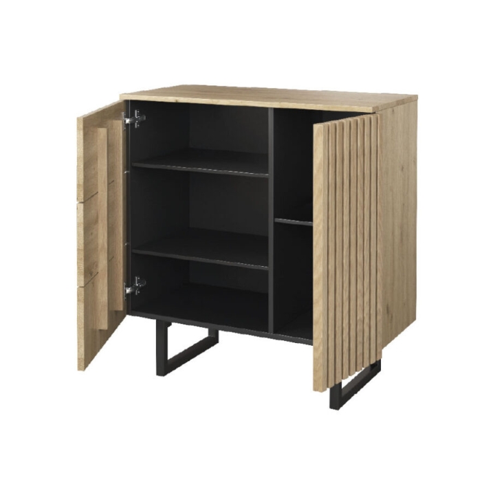 Are you looking for an elegant and functional storage space that will bring harmony and warmth to your interior? The Gintaro 2D Tall chest of drawers is the perfect solution for anyone who appreciates the combination of modernity and natural accents. Offering dimensions of 91 cm wide, 45 cm deep and 96 cm high, this sturdy chest of drawers will accommodate essential items without taking up too much space. The natural lager oak fronts provide durability and a timeless look, while the black design accents add a modern touch. Practical and stylish - Gintaro 2D Tall is a piece of furniture that will easily fit into a variety of interior arrangements.