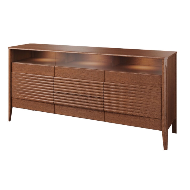 The body of the dresser measures 161 cm wide, 85 cm high and 50 cm deep, which allows it to maintain proportions favorable for a variety of interiors. Its form acquires lightness thanks to high legs, which give the furniture a subtle dynamics. The solid wood construction guarantees stability, while revealing the craftsmanship of the surface.