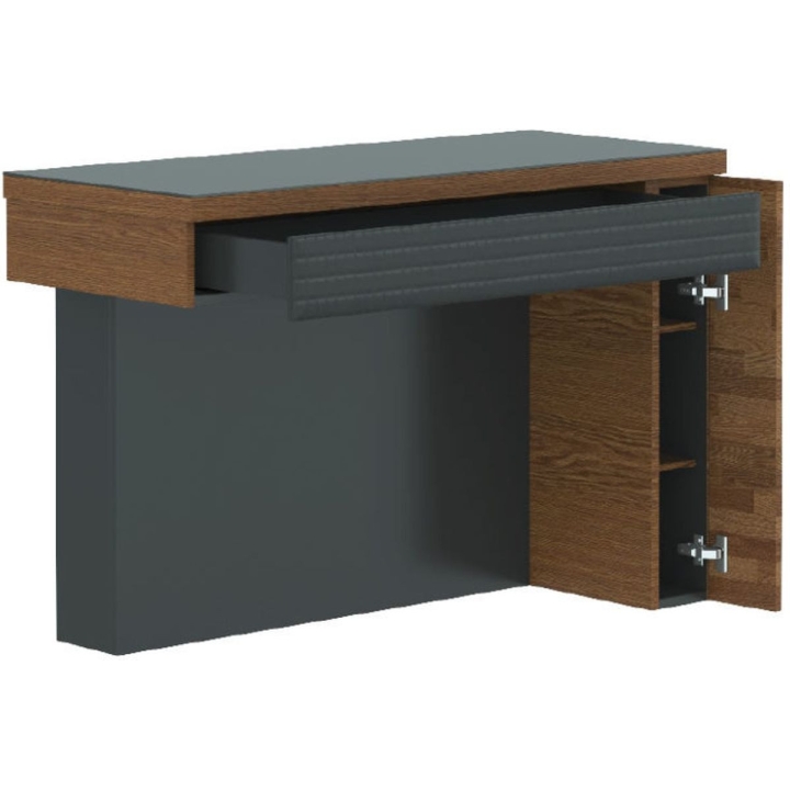 The fronts of the units are made of solid oak and the external sides of the bodies are made in natural veneer. The furniture is available in the colour of antique walnut juxtaposed with black. Modern solutions such as the push to open system, which allows drawers and doors to be opened quietly, which is particularly useful in the bedroom, and light points attached to the back edge of glass shelves emphasise the functional qualities of this collection. Verano is modular, which makes it easy to create a space for relaxation or dining. The collection includes, among others, a table, a bench with comfortable poufs, a spacious double bed with bedside tables on both sides, a chest of drawers, a dressing table with a mirror and comfortable wardrobes in several sizes.