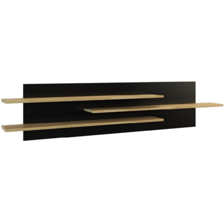 - The fronts of the units are made of solid oak wood, which is combined with dark glass or upholstery fabric (in the bedroom).