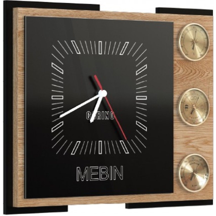 An original yet practical element in your living room? No problem! A stylish accessory will prove to be a weather station with which you will always know the weather for the coming days. The station is equipped with a thermometer, barometer and hygrometer, and a clock on a square panel in black Lacobel glass. The functional Corino weather station clock has the option of personalised engraving (city names are the most common choice). Made from high-quality oak, it enchants with elegance and captivates with the nobility of its natural grain. The piece is fixed to the wall. The furniture is suitable for modern as well as classic interiors.