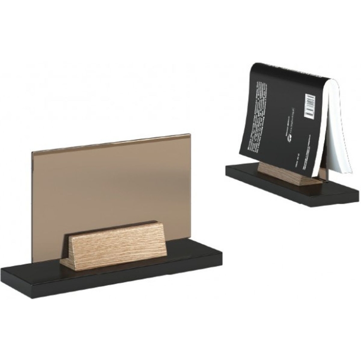 The book stand from the Corino collection by Mebin is a practical accessory that will provide a place to put your book or newspaper with ease. Thanks to it, you will not forget on which page you finished reading. The bookstand fits perfectly with the collection. It is an original gadget that will not only be a decoration for the bedroom, but also a functional element of the interior. The stand consists of a vertical glass panel embedded in a natural veneer element. The whole is placed on a black lacquered base. It delights with its elegance and noble grain. The furniture is suitable for both modern and classical interiors. Available in two colour options: natural oak and walnut.