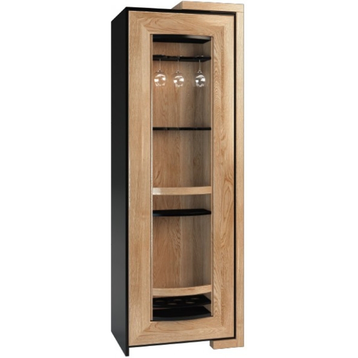 The swivel bar from the Corino collection is a stylish piece of furniture that will add a unique touch to your arrangement. The structure of the furniture is a combination of noble solid wood and black applications, creating an attractive whole. The furniture body made in natural veneer is combined with a wooden front. The black Lacobel glass panel and black lacquered inserts perfectly match the natural colour of the wood. The Corino bar consists of revolving shelves that provide the perfect place to display your most beautiful decorations. It also has a practical glass holder. The Corino swivel bar is equipped with LED lighting, which will perfectly highlight the unique design of the unit. The Corino Straight Rotating Bar is available in right and left-handed versions.