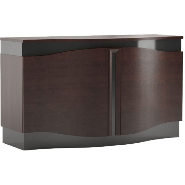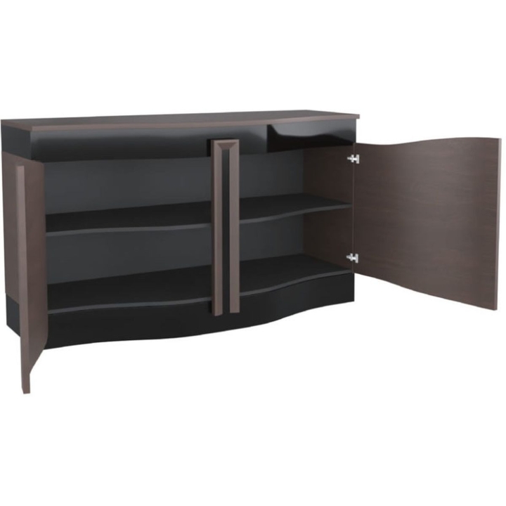 - the impression of a wave is emphasised by complementary colours - venge veneer fronts and glossy lacquered black inserts.