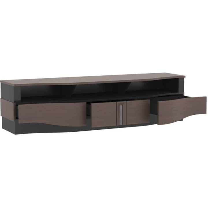 - the impression of a wave is emphasised by complementary colours - venge veneer fronts and glossy lacquered black inserts.