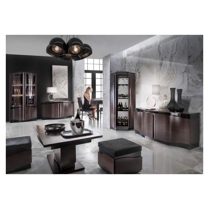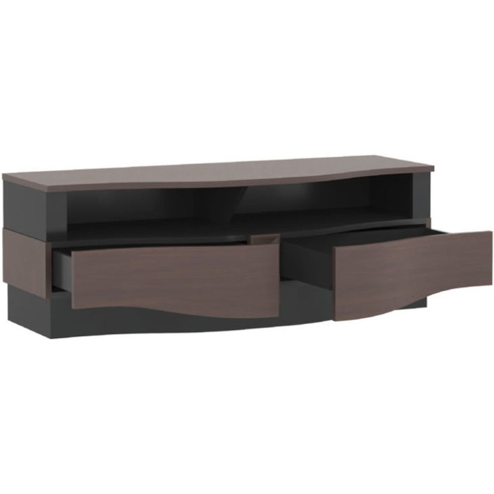 - the impression of a wave is emphasised by complementary colours - venge veneer fronts and glossy lacquered black inserts.