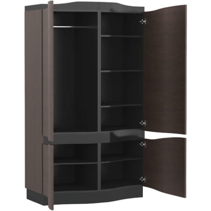 - the impression of a wave is emphasised by complementary colours - venge veneer fronts and glossy lacquered black inserts.