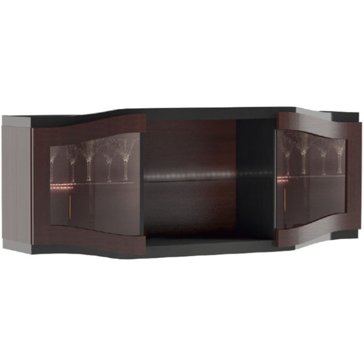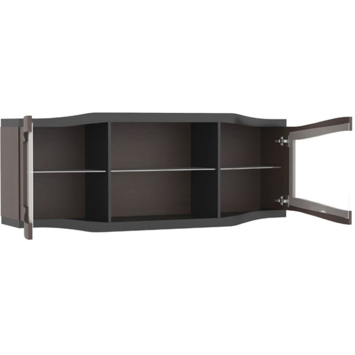 - the impression of a wave is emphasised by complementary colours - venge veneer fronts and glossy lacquered black inserts.
