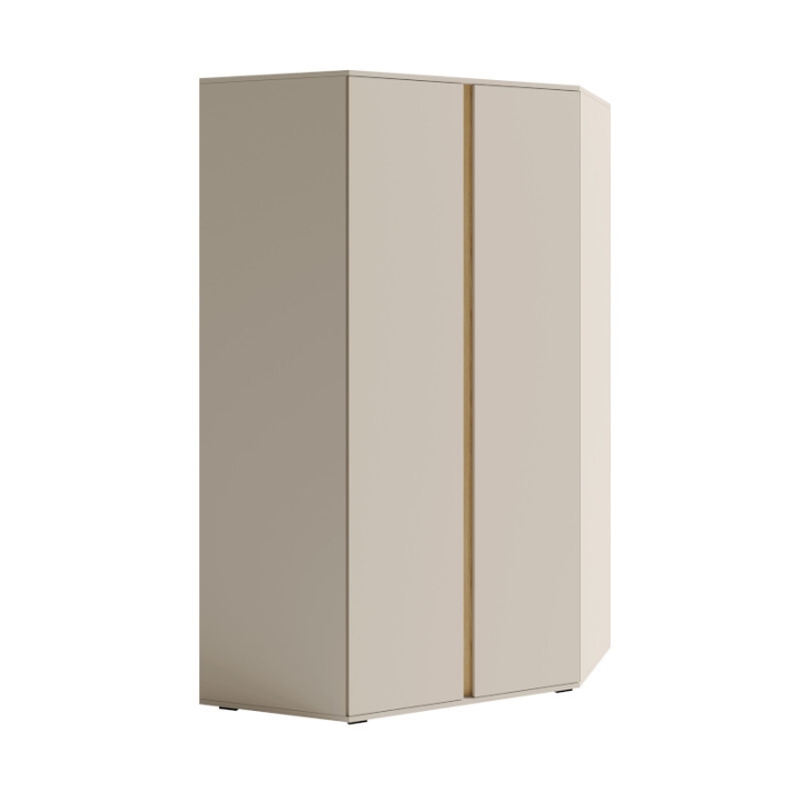 The colour scheme of the wardrobe - sand beige on the fronts, as well as on the sides and base - creates an expressive duo, which distinguishes the LC2 model from standard corner furniture. Edging protected by ABS veneer protects the sensitive edges from abrasion and moisture, which increases the life of the wardrobe under conditions of intensive use. The structure was designed for installation in the corners of rooms, where other cabinets may not fit or leave undeveloped space.