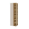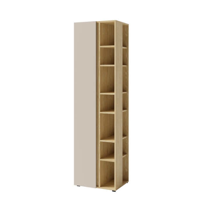 The finish of the bookcase combines sand beige on the vertical dividers with oiled oak colour on the body, which creates a visually coherent and subdued whole. The matt surface eliminates light reflections and does not show traces of daily use. The edges are finished with ABS veneer, which protects the structure against scratches, impacts and moisture - particularly important in the case of a piece of furniture with such an open character.