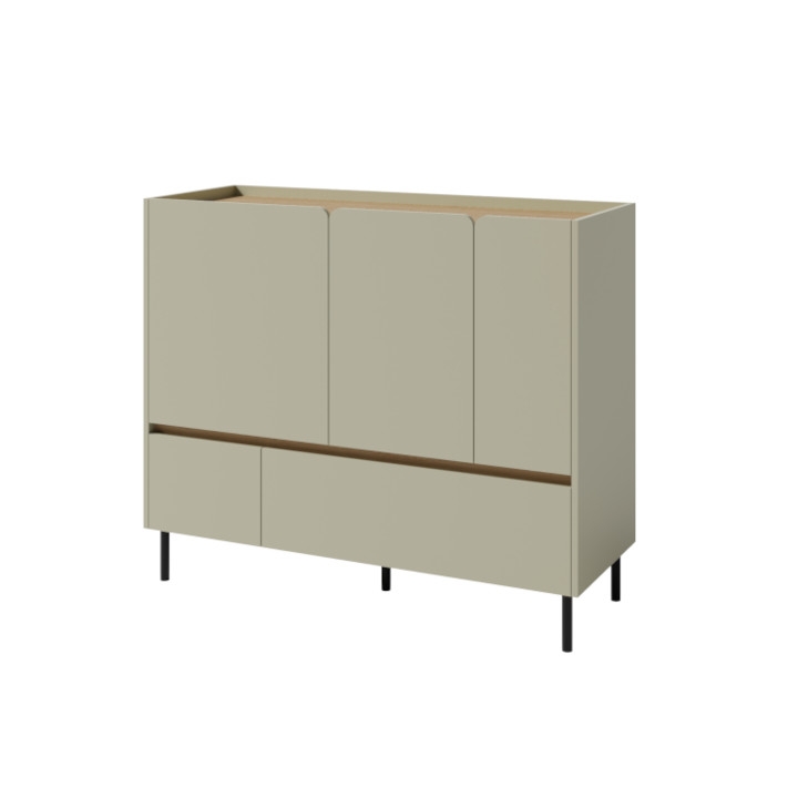 The Luca LC8 chest of drawers from Meblar is a three-door piece of furniture with additional drawers, designed to store items of various sizes and purposes. Its dimensions - 120 cm wide, 105 cm high and 40 cm deep - make it possible to use the wall space in a thoughtful way, while offering plenty of storage space. Thanks to its compact design, the chest of drawers is perfect for the living room, dining room, bedroom or hallway.
