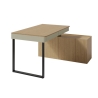 The set includes a sliding section in the form of a chest of drawers with doors, which can be positioned on either side to provide additional storage space for notebooks, office equipment, books or school supplies. The chest of drawers is an integral part of the design and its presence significantly increases the usability of the desk in everyday use, without taking up additional space in the room.