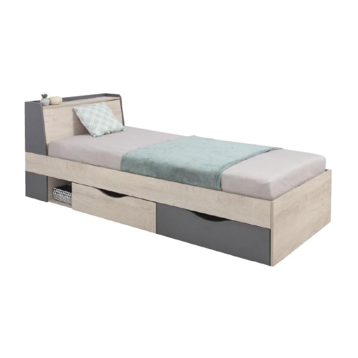 The Meblar Delta DL14 Bed (Left-Side Version) combines the natural warmth of oak with deep anthracite accents, bringing a subtle yet distinctive character to your interior. Measuring 85 cm height, 94 cm width, and 230 cm depth, it offers a comfortable sleeping area of 90 × 200 cm - an excellent choice for a teenager’s bedroom.