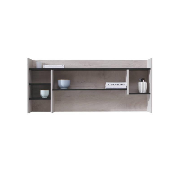 The Meblar Planet PL11 wall shelf is a striking addition that enhances any interior with a contemporary look and geometric character. Crafted from durable furniture board in an oak finish with black accents, it serves as a refined decorative element in modern spaces. Measuring 55 cm in height, 125 cm in width, and 24 cm in depth, it fits perfectly into both spacious and compact rooms.