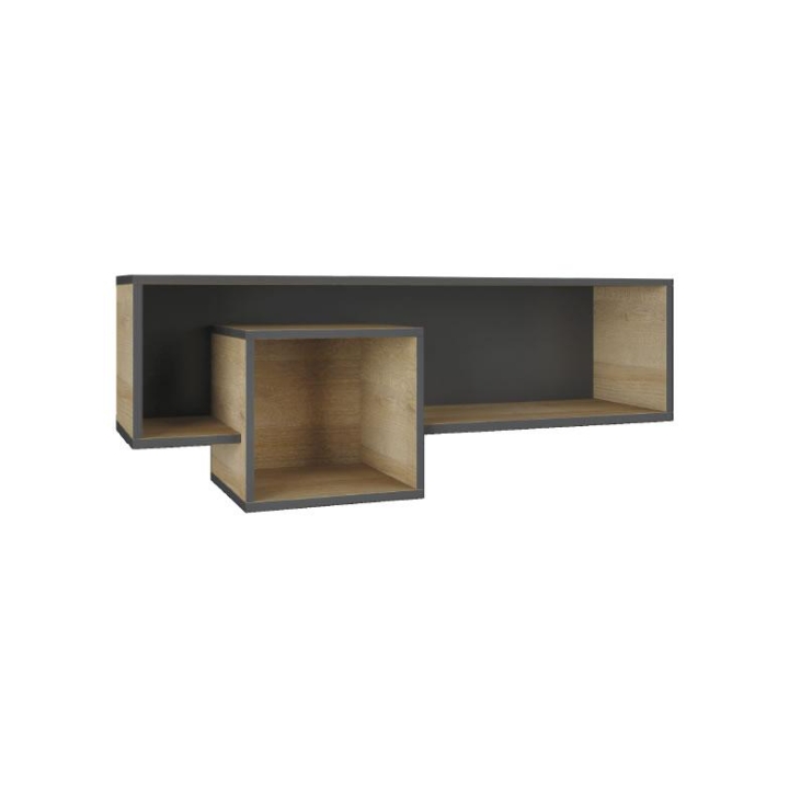 The Nano NA12 Shelf by Meblar is a modern piece of furniture that blends clean lines with geometric detailing. Measuring 40 cm in height, 110 cm in width, and 29 cm in depth, it is crafted from furniture board in a natural oak tone complemented by a graphite accent, bringing warmth and subtle elegance to your interior.