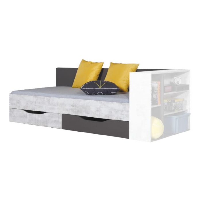 Crafted from durable furniture board, the bed ensures long-lasting use and easy cleaning. The mattress is not included, allowing you to select the model that best suits your individual comfort and firmness preferences. There’s also an option to add a dedicated underbed extension, offering even more storage capacity and allowing you to create a functional relaxation zone.
