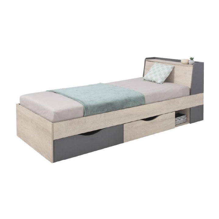 The Meblar Delta DL14 Bed - Right-Side Configuration brings together the natural warmth of oak and deep anthracite details, introducing a subtle, contemporary charm to your room. Its dimensions — 85 cm high, 94 cm wide, and 230 cm deep — offer a comfortable 90×200 cm sleeping surface, perfect for a teenager’s or guest bedroom.