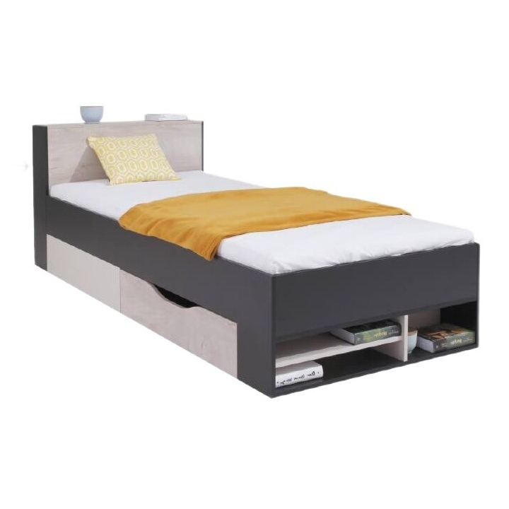 The Meblar Planet PL14 bed left-hand version combines sleep comfort with additional storage space. The structure made of furniture board measures 77 cm in height, 94 cm in width, and 224 cm in depth, while the sleeping area is 90 × 200 cm.