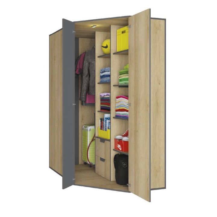 This corner wardrobe is perfect for bedrooms, youth rooms, or dressing rooms, seamlessly fitting into modern as well as classic décor styles.