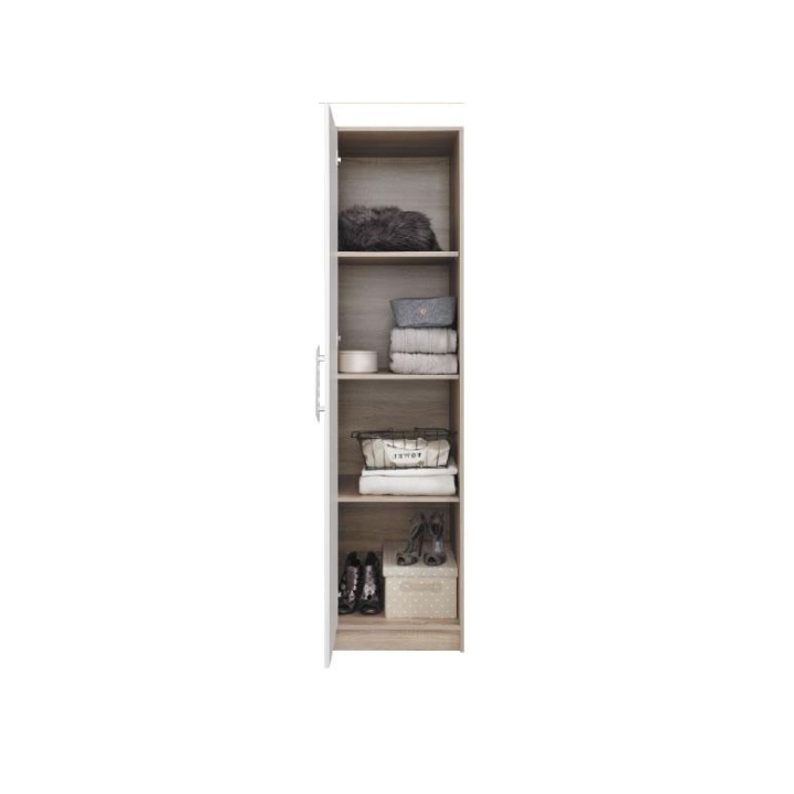 The Smart SR5 Wardrobe by Meblar, in the left-opening version (the door opens to the left-hand side), is a sleek and functional piece that complements larger furniture sets or serves as a standalone unit in smaller interiors. Measuring 190 cm in height, 50 cm in width, and 56 cm in depth, it offers a compact design that fits perfectly even in tight alcoves or hallway spaces.