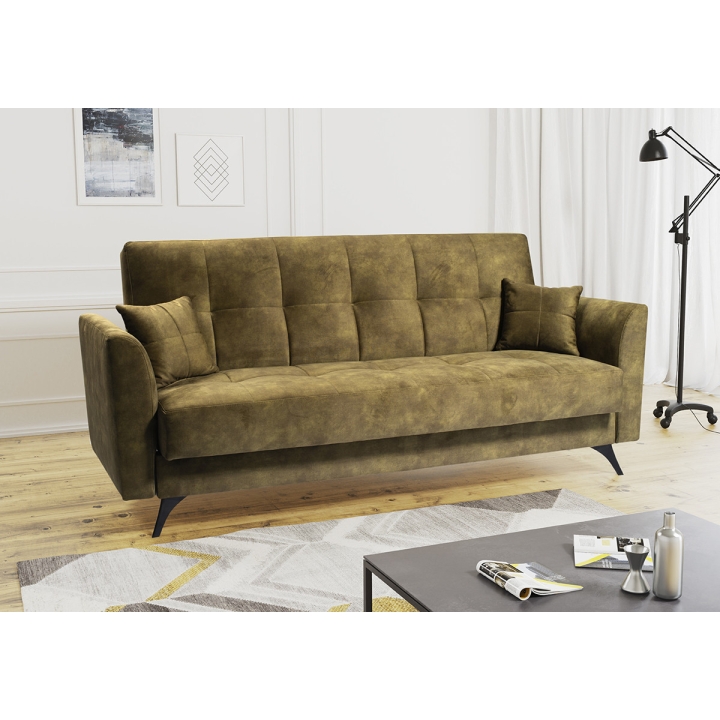 The Cobalt sofa bed from the manufacturer Meble Bestis a combination of elegance and functionality. The use of the highest quality highly elastic foam and corrugated springs in the seat resulted in a comfortable piece of furniture, in which you can freely sit or lie down. The furniture will also ensure a comfortable rest while you sleep, as it has been equipped with a sleeping function. The sleeping surface is equal to 190 x 130 cm. The sofa bed also has a roomy storage compartment where you can put your bedding. The furniture is also a fantastic modern design. The striking stitching decorating the backrest adds a charming touch, while the slender metal legs will ensure an attractive appearance and add lightness.