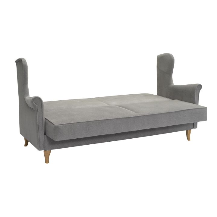 The Columbus sofa bed from the Meble Best manufacturer is a stylish piece of furniture, which captivates with its classic form. It will undoubtedly steal the hearts of those who value timeless elegance, and will ensure that after a hard day's work you can rest at home. The Columbus sofa also has a practical use, as it serves as a great place to sit on a daily basis, and when needed, it turns into a comfortable bed to sleep on. The seat is filled with corrugated spring and HR high elastic foam. The whole is accentuated by the slender wooden legs, which add both visual lightness and chic. Get the extremely unique Columbus furniture and enjoy comfort today!