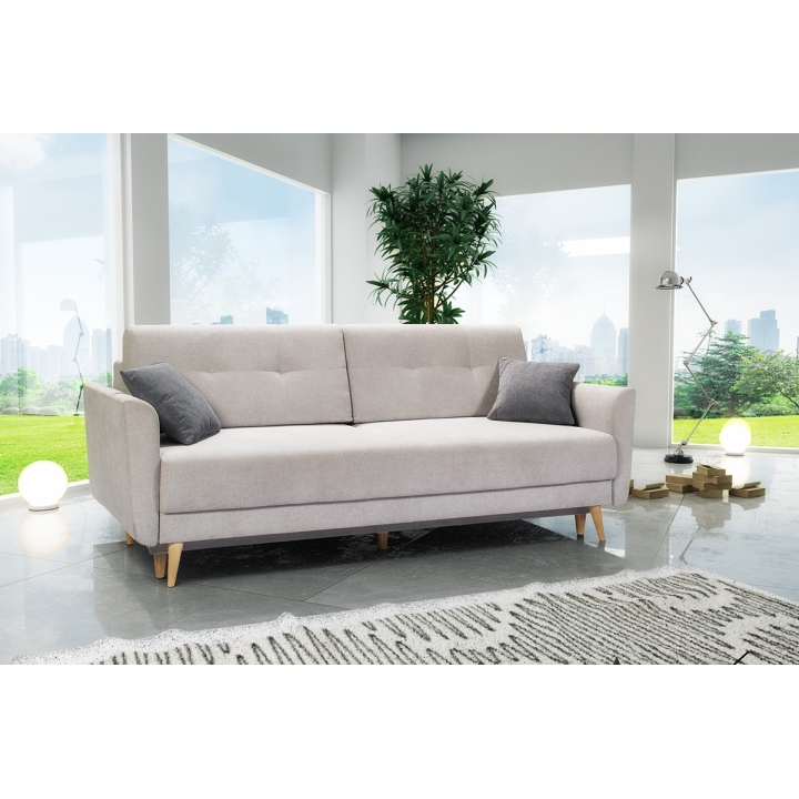 Are you dreaming of a seating area that looks like a magazine cover? The Hampton sofa is a hit! The sofa delights with its timeless design and simple form. The sofa is perfect for both young people's rooms and living rooms. Thanks to its functionality, the sofa will make it possible to create a practical and stylish seating area in which everyone will relax. In addition, the sofa is equipped with a DL mechanism sleeping function, which ensures quick and easy unfolding of the sofa for sleeping. A practical bedding container is also a plus for storing textiles. The body of the sofa rests on subtle wooden legs, which add visual lightness.