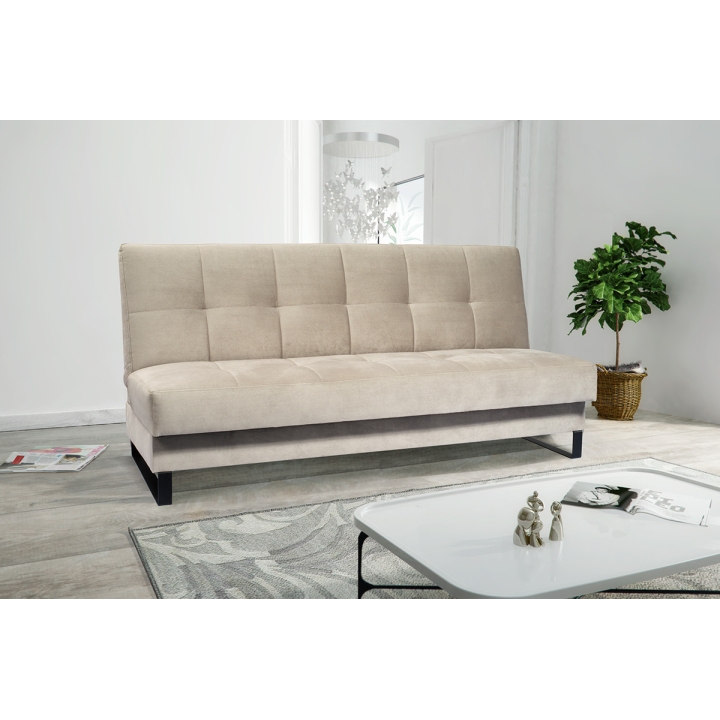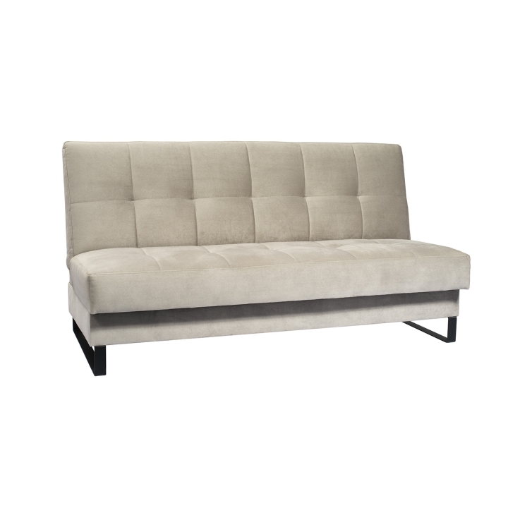 The stylish Polaris sofa from the manufacturer Meble Best is an ideal proposal for modern interiors. The sofa is a visually light composition, which will give the interior a shine and freshness. The model is distinguished by its minimalist form, which looks exceptionally chic. Quilting, tasteful hatching and metal skirts decorating the backrest highlight the modern design and add charm. The Polaris sofa provides high comfort of use both at night and during the day. The advantage of this model is its sleeping function and practical bedding container. Seating comfort and an even sleeping surface are thanks to the corrugated springs and HR high elastic foam.