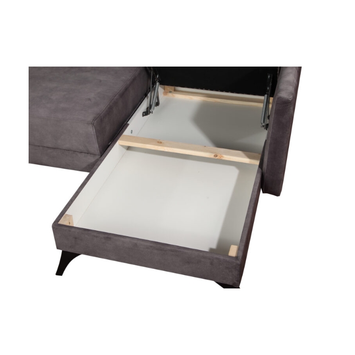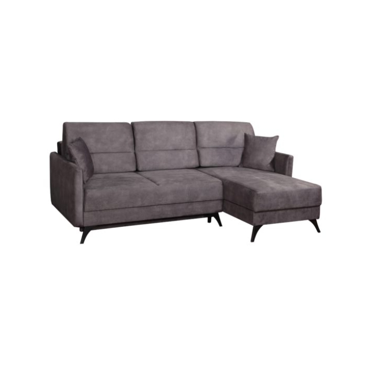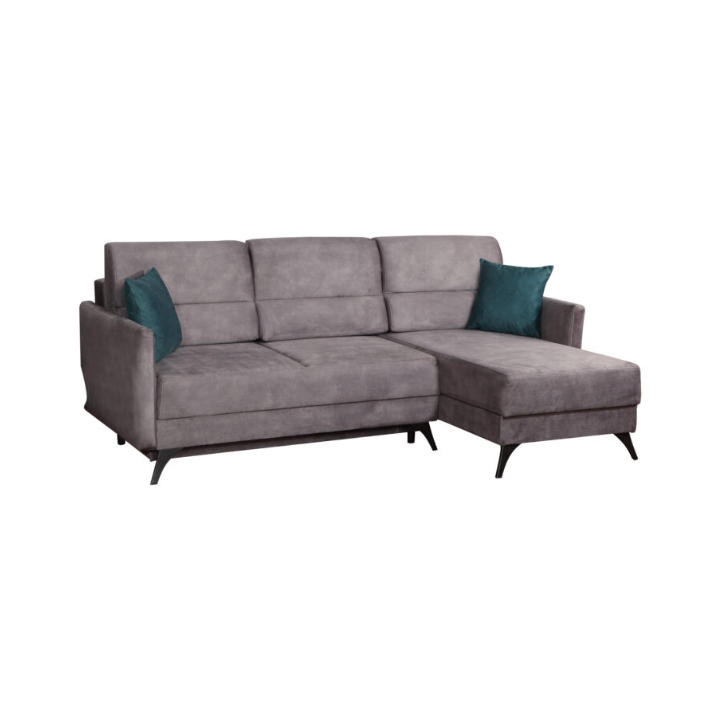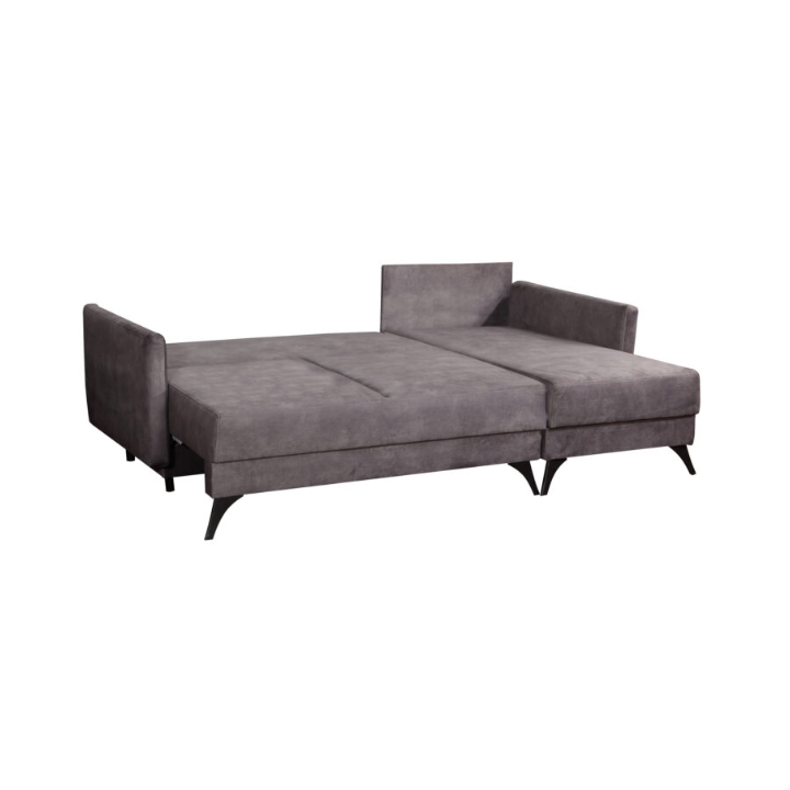 The stylish corner sofa with a sleeping function Carmen is a piece of furniture that is sure to meet the requirements of even the most demanding customer. The furniture boasts a number of practical functions. One of them is the daily sleeping function, thanks to which both you and your guests will be able to enjoy a comfortable bed. In addition, it's practical storage compartment will enable you to store small items and bedding. The comfortable backrest consisting of three cushions will ensure that you can relax comfortably in front of the TV or during gatherings with the family. The soft seat has been filled with corrugated spring and high elastic foam. The body of the furniture has been set on stable metal legs. The Carmen corner sofa is an ideal piece of furniture that can cope with any situation and will add class and elegance to your interior.