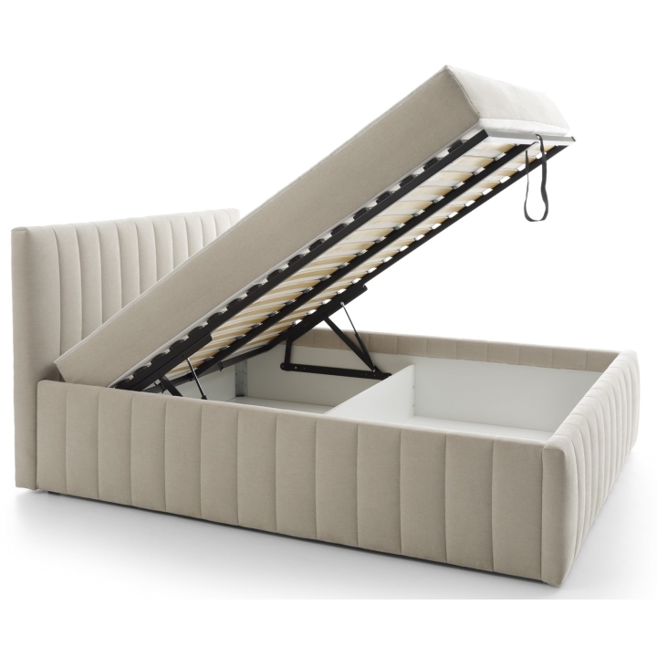 The upholstery is distinguished by its durability and careful finish, which enhances the visual value of the bed. The lifting mechanism facilitates daily use, and the container structure has been designed to make maximum use of the available space. The combination of modern technology and convenient solutions contributes to the comfort of use.