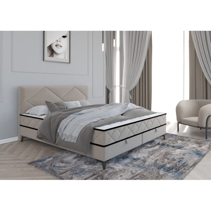 The bed is sold in a set with a duo pocket 7 zone mattress with a layer of coconut, which provides proper support for the figure and a healthy sleep. The bed with mattress and container is a great solution for a modern bedroom. Choice of bed upholstery colours.