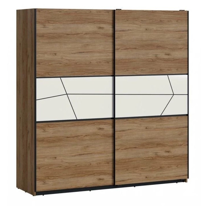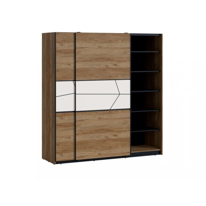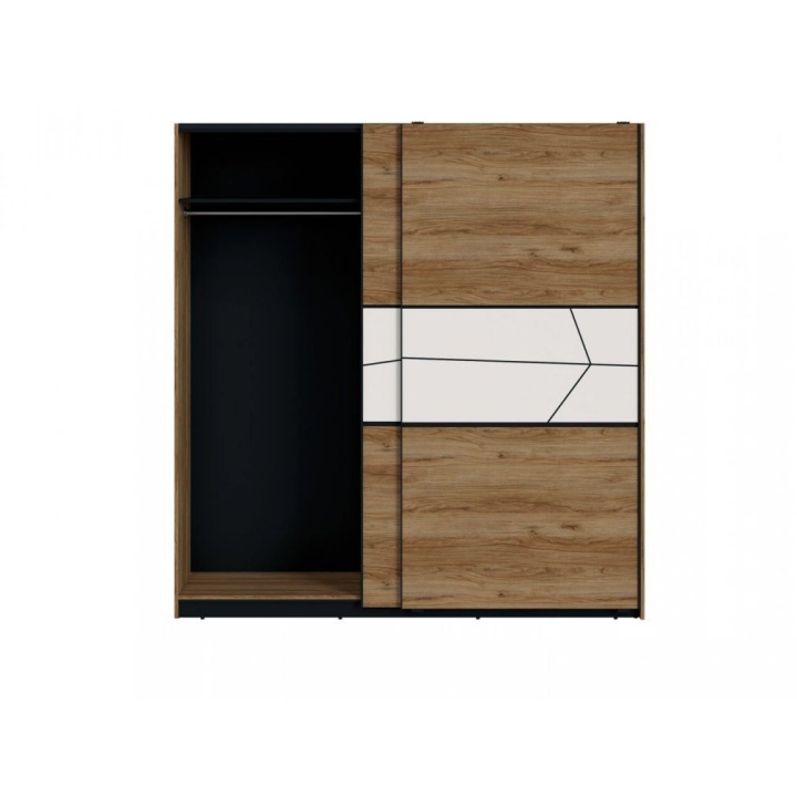 TheBrolo 2D Type BROS07 wardrobe by Meble Wójcik is the ideal solution for those looking for modern design combined with convenient solutions for small spaces. Its sliding fronts, made from MDF and laminated chipboard, ensure comfortable use in narrow rooms, eliminating the need to leave space for opening doors. The colour scheme of Oak Catania, Black Pearl and White Gloss creates a harmonious and universal composition, matching industrial, glamour or modern style interiors.