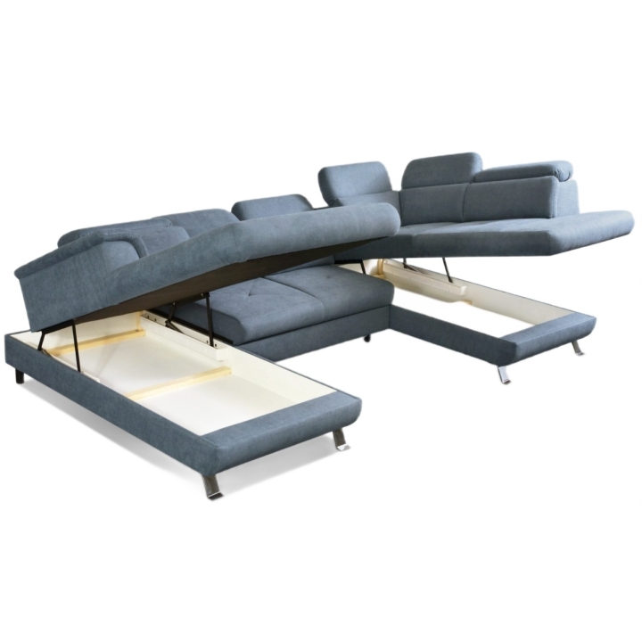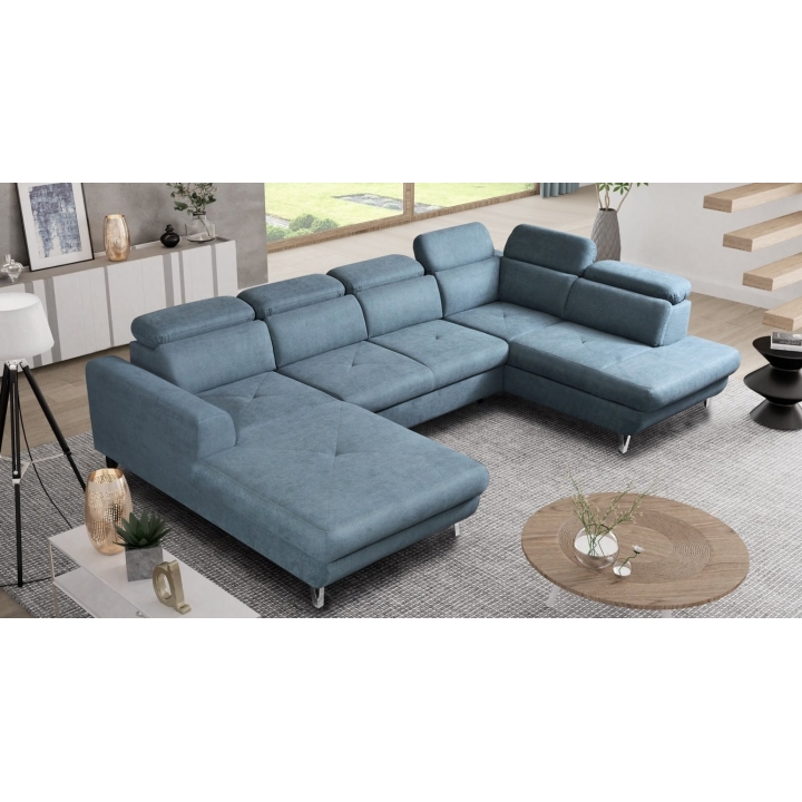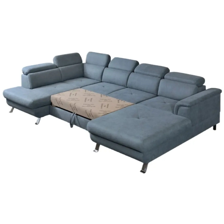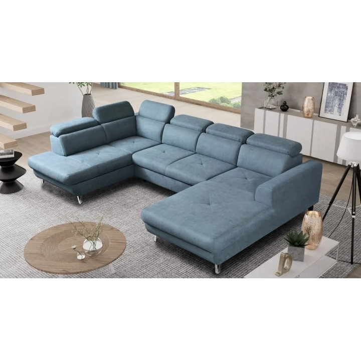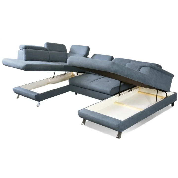 The Dolce 331x200cm corner sofa is a spacious U-shaped sofa designed to furnish a living room. The applied "dolphin" mechanism allows for easy unfolding of the furniture to a sleeping function with an area of 255x122cm, which will prove useful during guests' visits. In addition, the furniture is equipped with two bedding containers for easy storage.