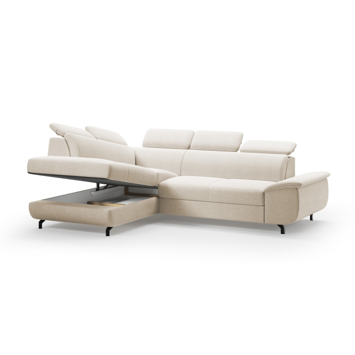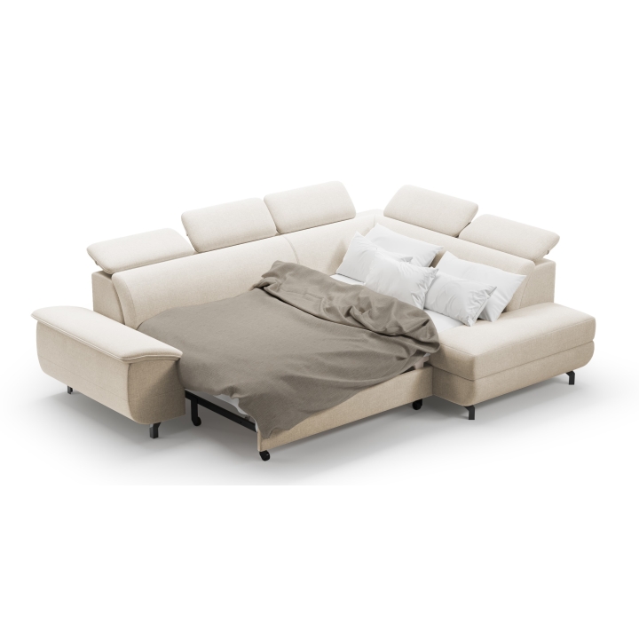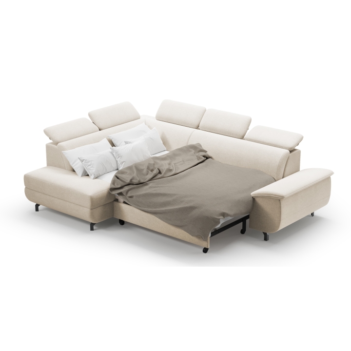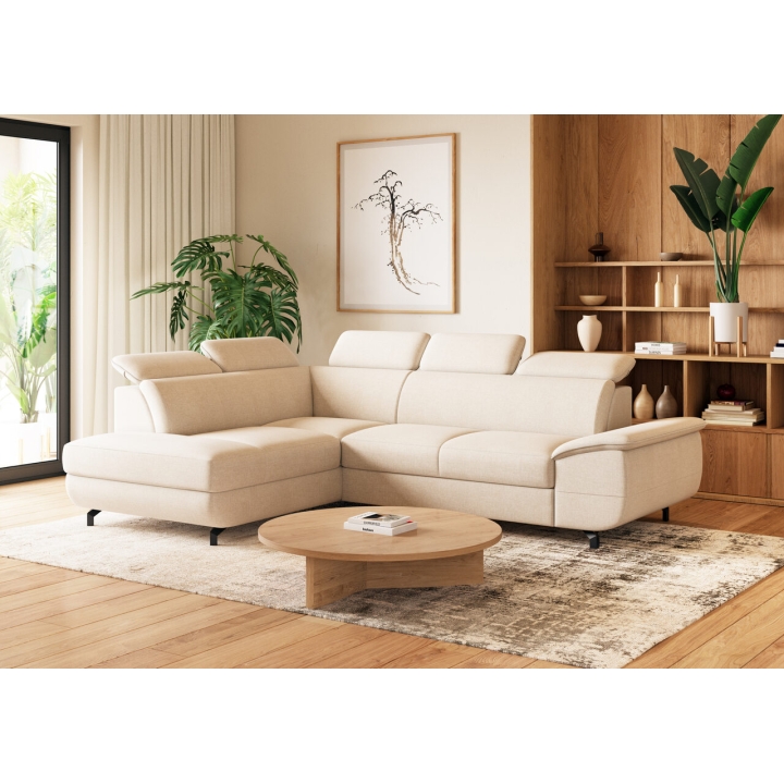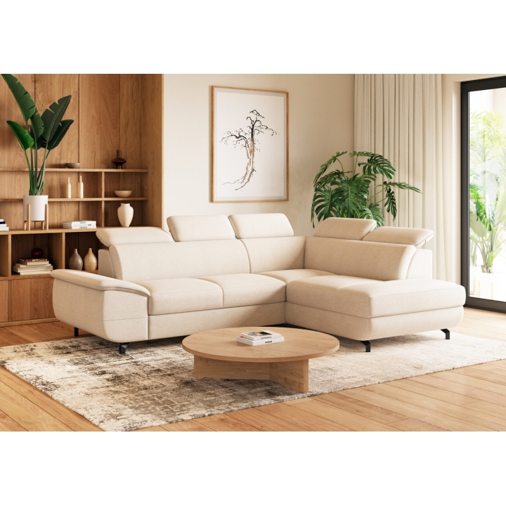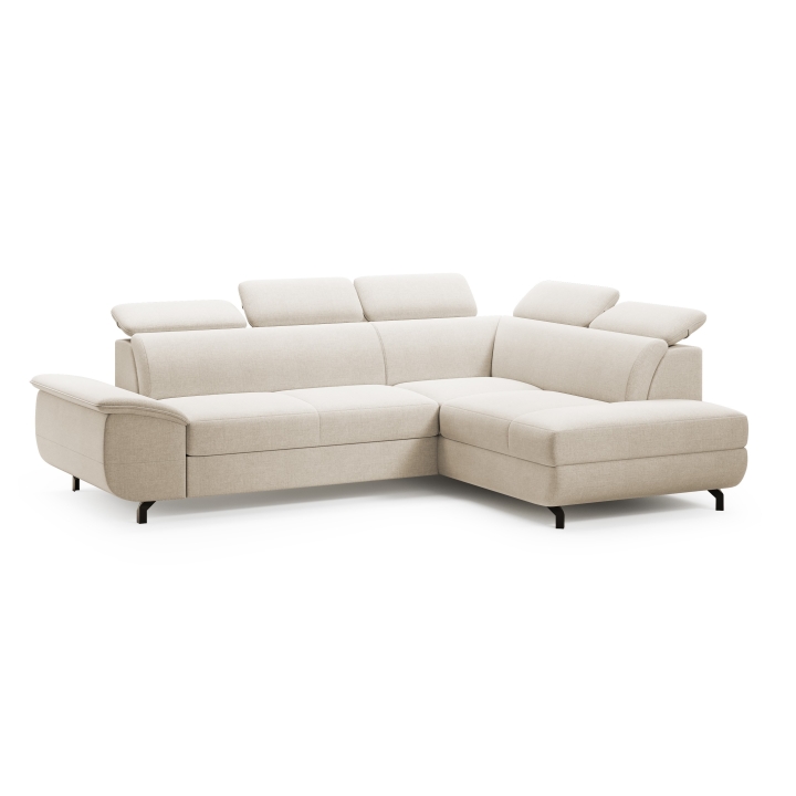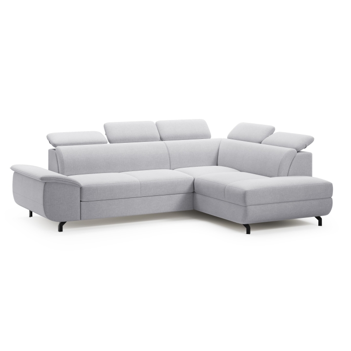This model is entirely covered with high-quality fabric, available in many colour versions, making it easy to match it to a particular interior. The fabric is characterised by increased durability and its aesthetic surface looks great in both daylight and artificial light. The possibility to choose upholstery from a wide sampler makes the corner sofa a universal piece of living room equipment.