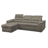 The corner sofa with dolphin sleeping function allows the furniture to be easily unfolded to form a bed with a sleeping surface of 126 × 210 cm, which is also made on a corrugated spring. The integrated bedding container provides a convenient place to store blankets or cushions. The model is available in right- and left-sided versions, making it easy to fit the corner sofa into the interior layout. Upholstered on all sides, it can decorate the living room even standing in the middle of the room.