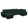 This model is equipped with a dolphin type sleeping function, as well as two bedding containers for easy storage. Adjustable headrests and wide armrests increase comfort when relaxing, while the high backrest improves back support. The corner sofa is available in left and right handed versions to suit the interior layout. It is upholstered on all sides , so it can be placed in the middle of the living room.